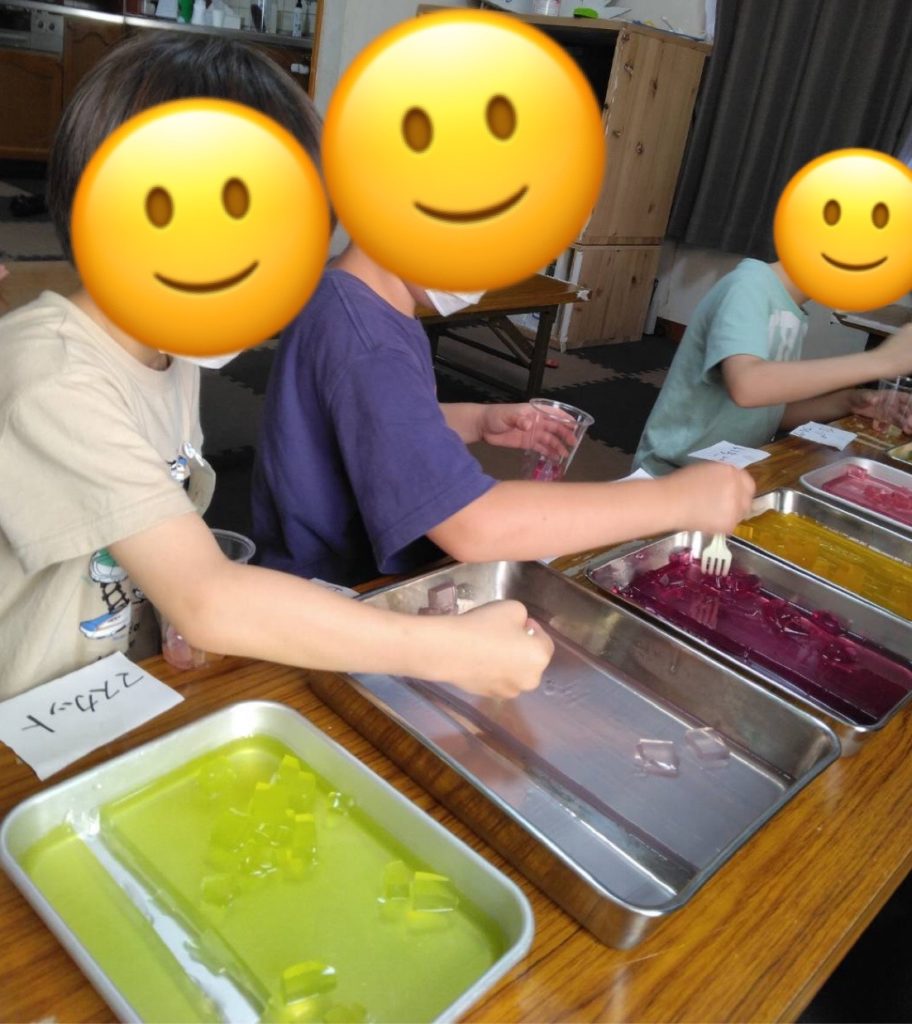 「今まで食べた中で一番おいしいゼリーだよ!」「もっと食べたい。」と子供たちに大人気でした😊