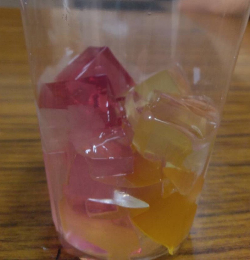 何色かの花に見立てたゼリーから、自分で好きな色を選んでカップに入れます。