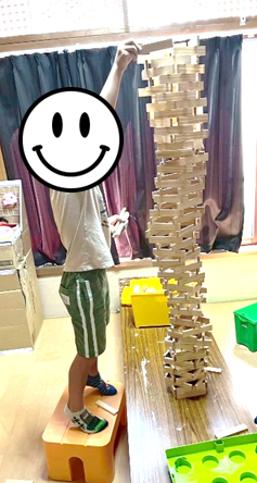 ジェンガを使い、高く積み上げて遊びました。